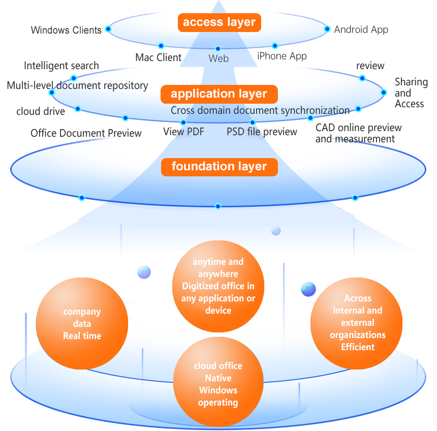 Rapid office collaboration and file sharing greatly improve office efficiency;